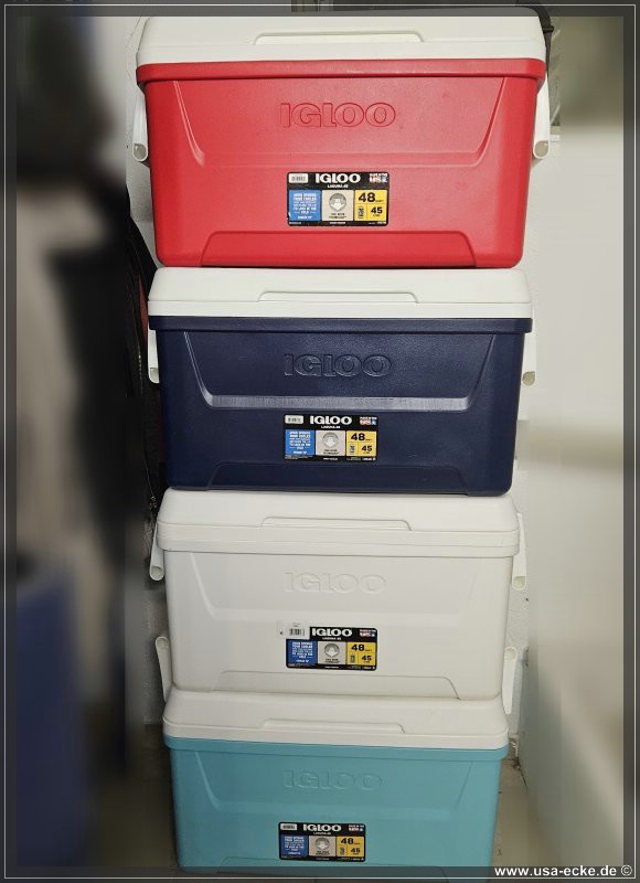 Die Box alleine hilft natuerlich noch nicht viel, was man ebenfalls noch fuer kalte Getraenke und Lebensmittel braucht, ist Eis. Das bekommt man fast immer gratis im Hotel oder Motel (auch wenn das oft nicht allzu gerne gesehen wird), oder fuer zwei, drei Dollar ueberall zu kaufen.