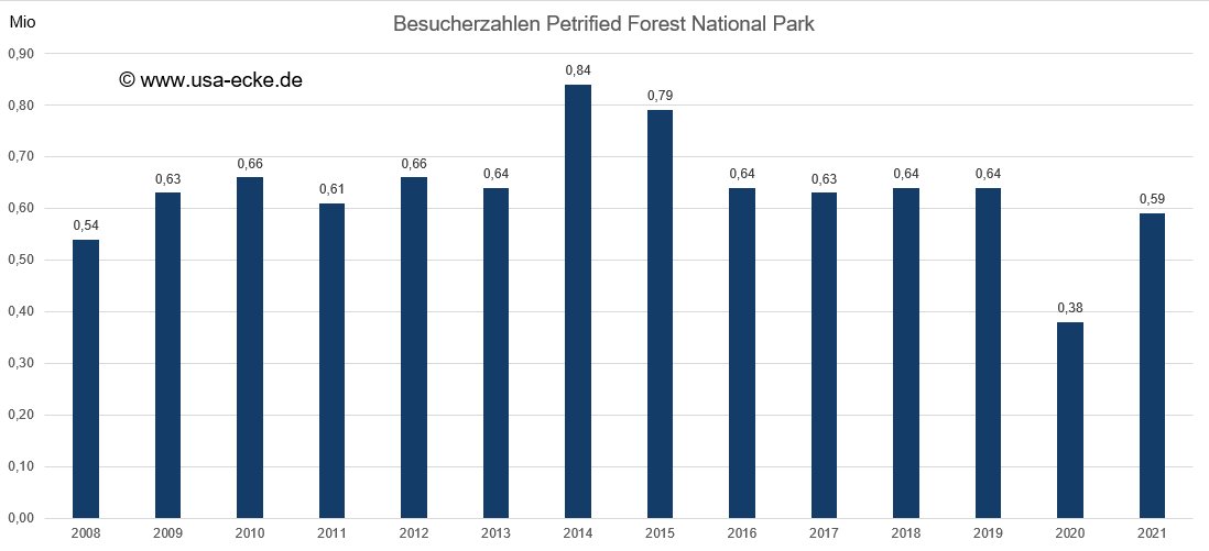 Am 8. Dezember 1906 wurde ein Teil der Fundstaetten als National Monument unter Schutz gestellt, 1932 kam ein Teil der Painted Desert dazu, das Schutzgebiet umfasste seitdem eine Flaeche rund 378 km˛. Jaehrlich kommen etwa 700.00 Besucher in den Park.