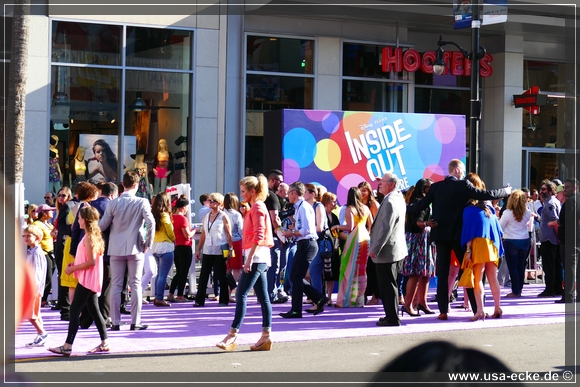 Direkt vor dem Theater ist alles gesperrt – Premiere von Disneys Inside Out mit allen „Stars“, was bei einem Animationsfilm heisst: allen Synchronsprechern. Wir kennen kaum jemanden, bis auf zwei Ausnahmen: Kyle MacLachlan, der mit der Serie Twin Peaks beruehmt wurde und die Rock-Roehre Pink, die mit ihrer Tochter kommt.