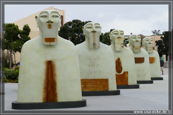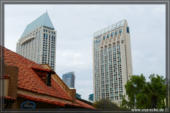 Da es bereits 15.00 Uhr ist, starten wir gleich nach Seaport Village. Dort schlendern wir durch die netten Souvenirlaeden, bestaunen die nahegelegenen Hochhaeuser und spazieren ein wenig am Meer entlang.