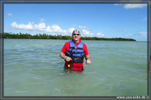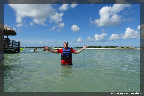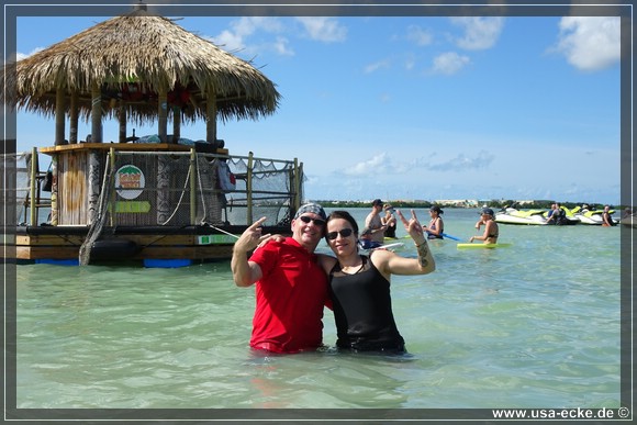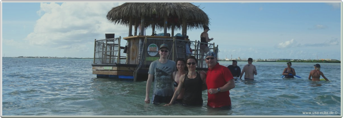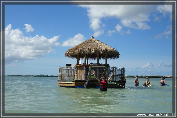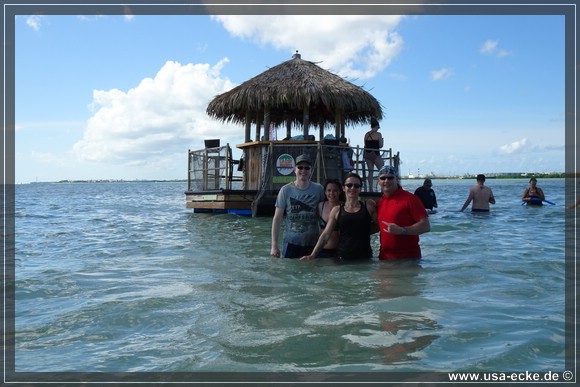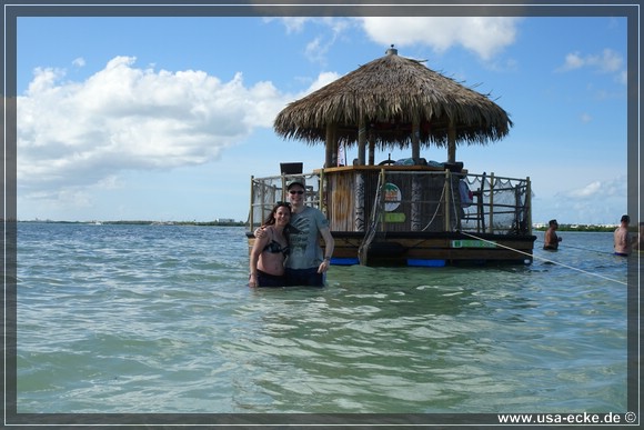 Nachdem wir zunaechst im Golf von Mexico unterwegs waren, geht es nun unter dem Overseas Highway hindurch in den Atlantik. Dort halten wir an einer wunderschoenen Sandbank, die wir schon von unserer letzten Tour kennen *klick*. Einfach traumhaft hier! Allerdings gab es damals die Tiki Bar hier noch nicht. |