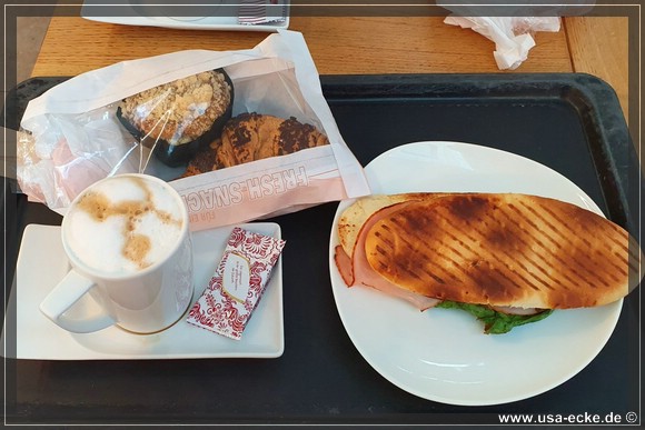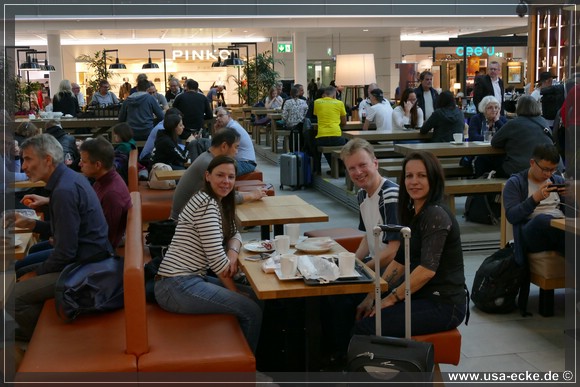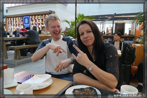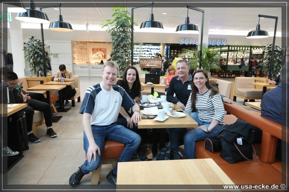 Nachdem das erledigt ist, goennen wir uns wie immer erstmal ein Airport-Fruehstueck. Sissi & Franz, bei dem wir das letzte Mal waren, finden wir nicht mehr, dafuer einen anderen durchaus bekannten Namen. |