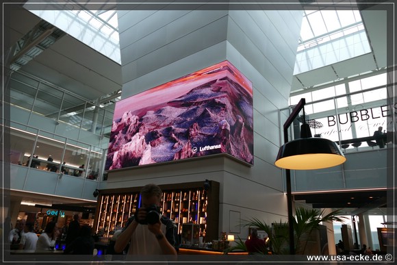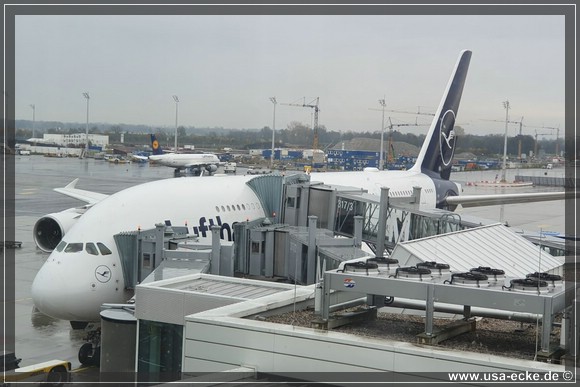 Dann aber geht es zum Boarding in Richtung Gate L24. Die Streiks bzw. Streikandrohungen bei Lufthansa in den letzten Wochen haben uns zwar ein wenig verunsichert, aber gluecklicherweise gibt es heute keine Probleme.