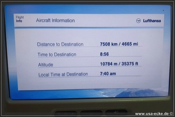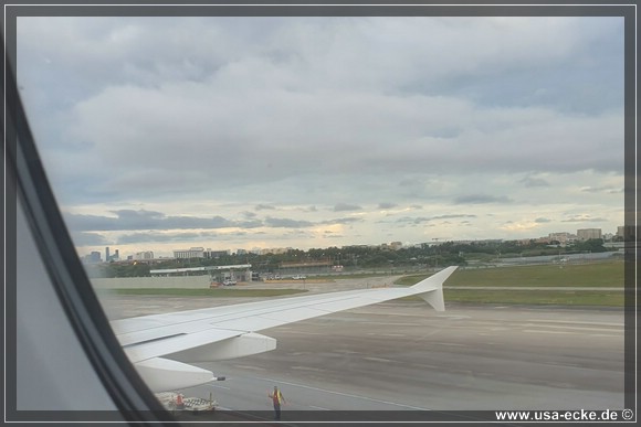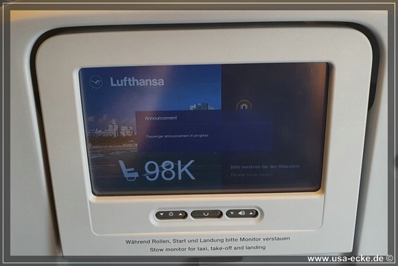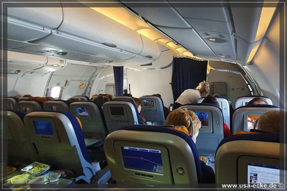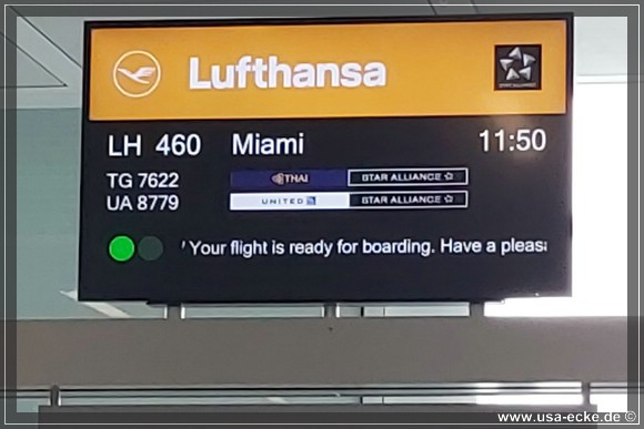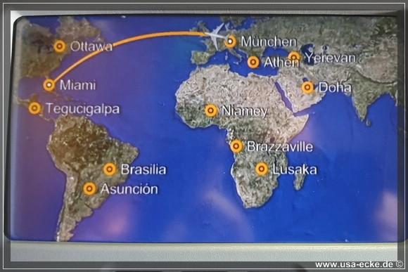 Unser Lufthansa-Flug mit einem Airbus A380 bringt uns nonstop von Muenchen nach Miami. Der Start verzoegert sich nur wenige Minuten, sodass wir relativ puenktlich in Florida landen sollten. |