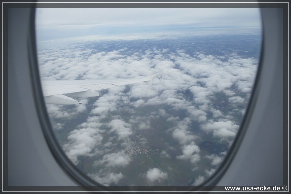Beim Boarding gibt es dann doch eine kleine Verzoegerung. Ausgerechnet mein Boarding Pass hat die beruehmten SSSS aufgedruckt. Bedeutet: eine zusaetzliche Sicherheitskontrolle! Das geht nach Zufallsprinzip und dauert dann doch etwas laenger als erwartet. So sind wir erst bei den letzten Passagieren, die an Bord gehen.