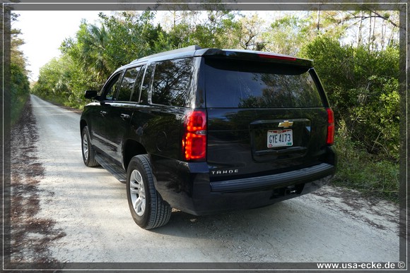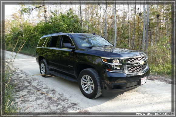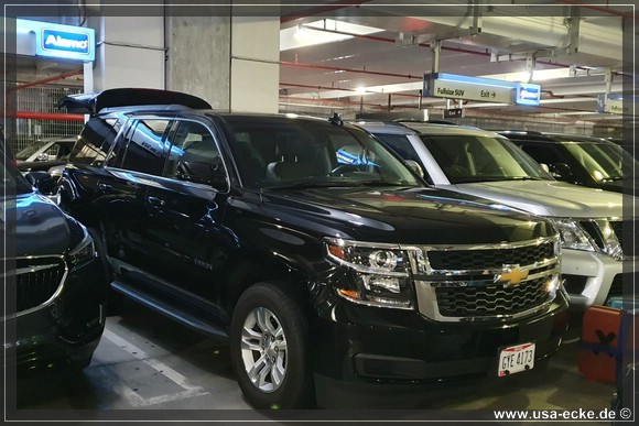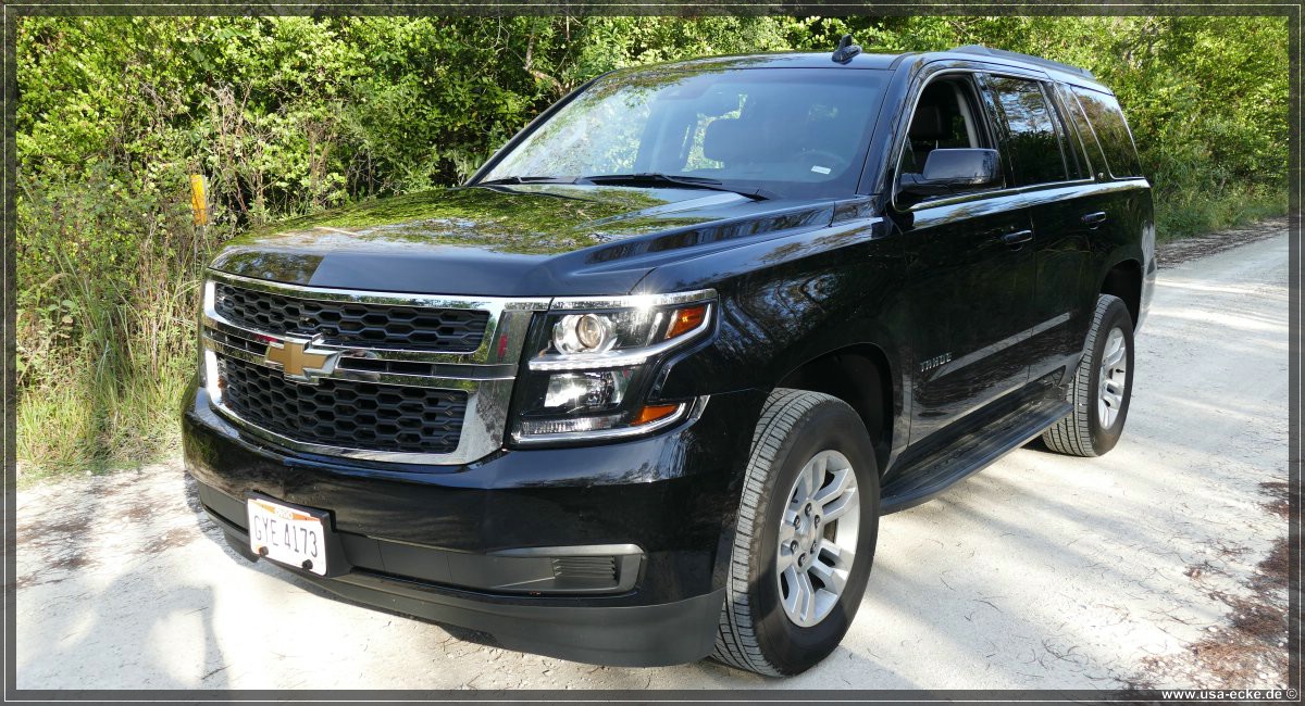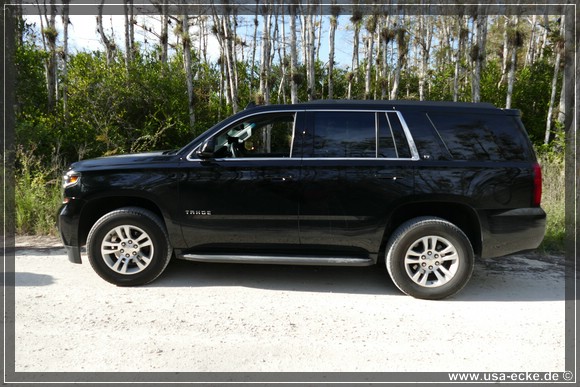 Da wir gemeinsam nur ein Auto gemietet haben, gibt es dieses Mal einen netten etwas groesseren SUV! Die Choiceline mit den Fullsize -SUV’s ist gut bestueckt, doch einer springt uns vieren sofort ins Auge: ein Chevrolet Tahoe (4x4) mit etwas mehr als 10.300 Meilen auf dem Tacho, schwarz mit nahezu Vollausstattung. Im Prinzip der baugleiche SUV wie unser GMC Yukon vom Sommer. Gekauft! |