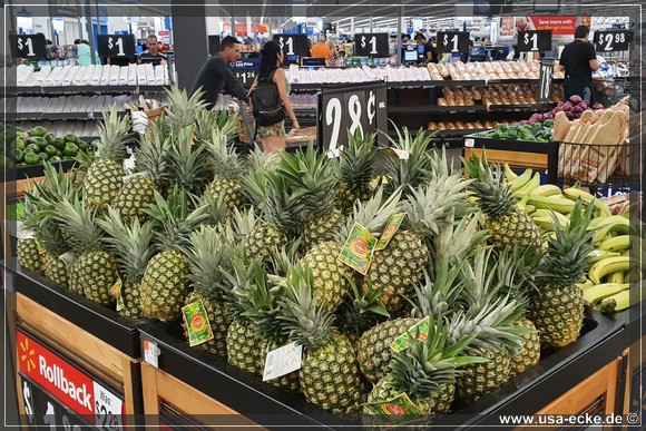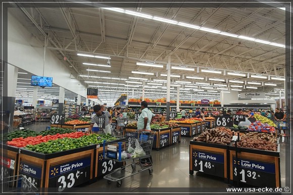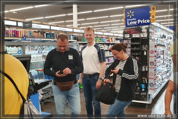 Als erstes geht es zum Walmart – wie immer unser erster Stopp nach der Mietwagenstation. Die Einkaeufe gehen eigentlich ganz flott, doch an der Kasse stehen wir dann ewig in der Schlange. Naja – da heute alles so prima geklappt hat, ist das zu verkraften. |