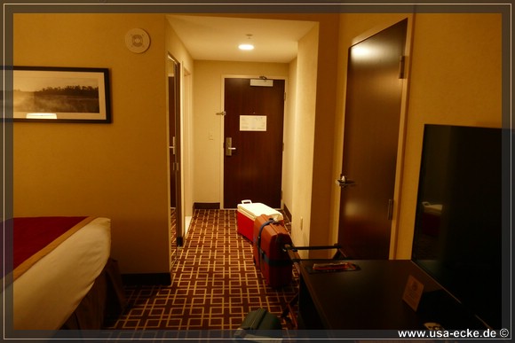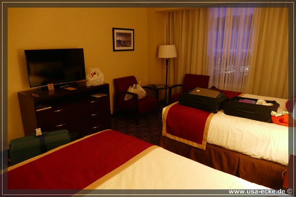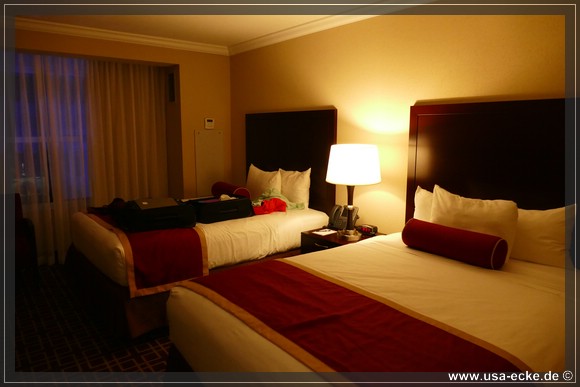 Irgendwann macht sich der Jetlag dann doch bemerkbar und zwingt uns zum Rueckzug. Gegen elf Uhr sind wir zurueck auf unserem tollen Zimmer und fallen muede ins Bett. |