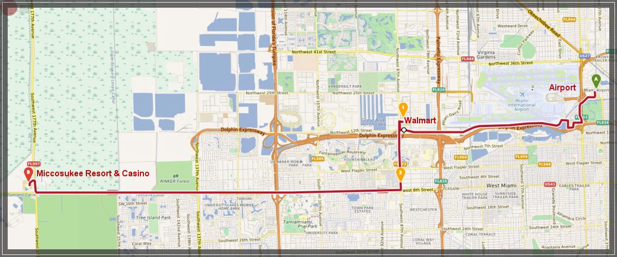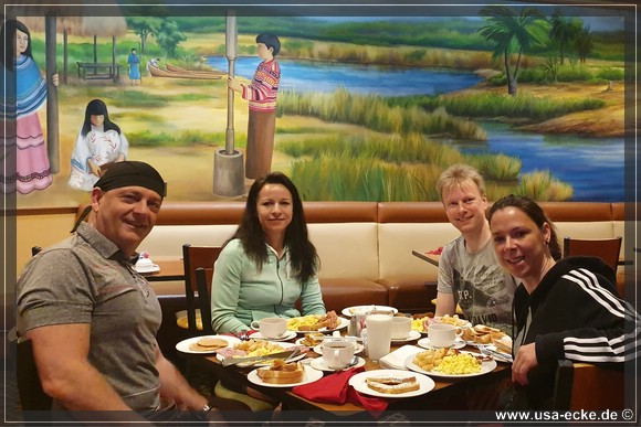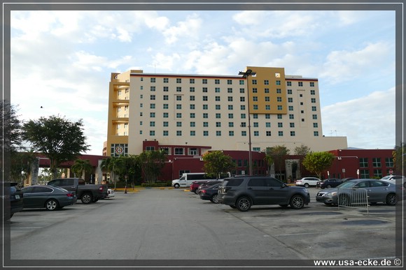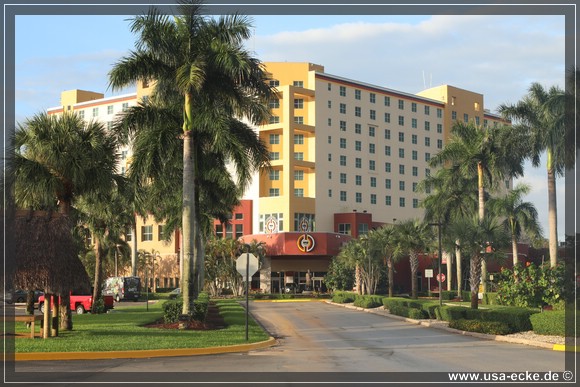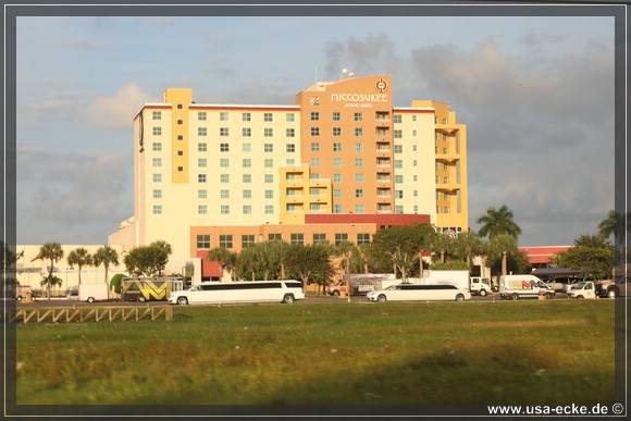 Kurz darauf erreichen wir unser erstes Hotel und das kennen wir schon: das Miccosukee Resort & Casino. Das haben wir uns ausgesucht, damit wir morgen einen guten Ausgangspunkt fuer den ersten Reisetag haben.