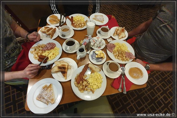 Das Fruehstueck ist irre. Eigentlich hatten wir deutlich weniger erwartet, denn der Preis ist wirklich in Ordnung. Gut, dass wir das deutlich teurere Buffet dieses Mal nicht gewaehlt haben, denn wir schaffen unser Essen nicht mal annaehernd. |