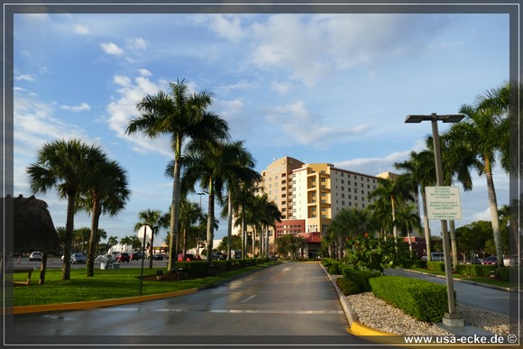 Bereits um sieben Uhr verlassen wir das tolle Miccosukee Resort & Casino, aber da es gestern bei unserer Ankunft ja schon stockdunkel war, nehmen wir uns noch schnell Zeit fuer ein paar Fotos von aussen. |