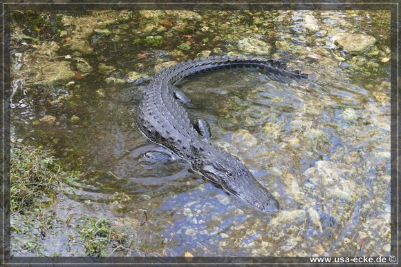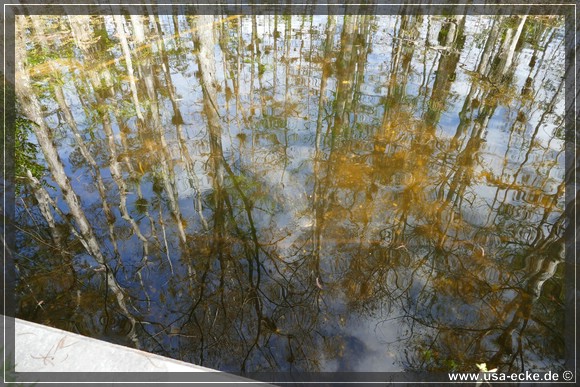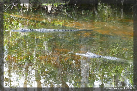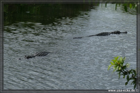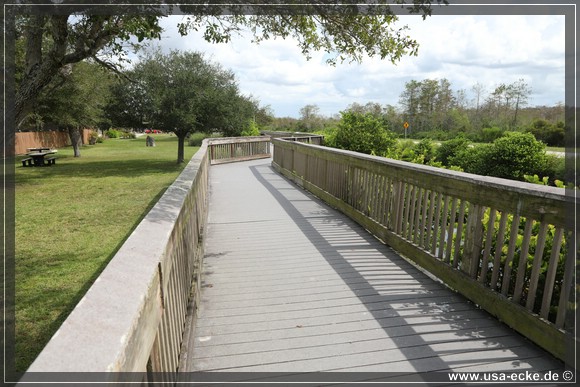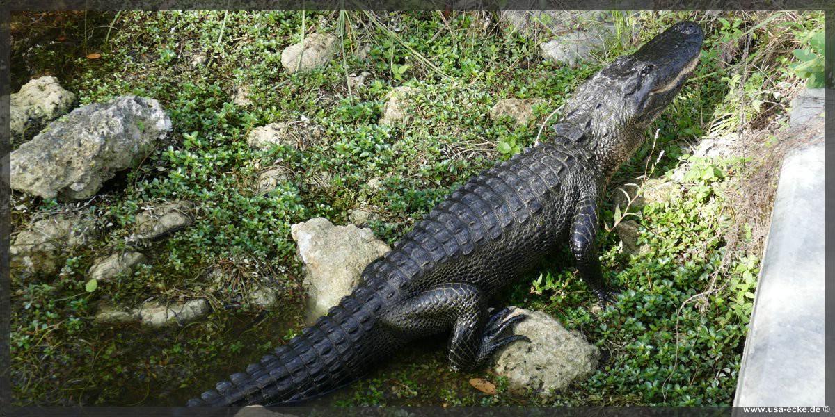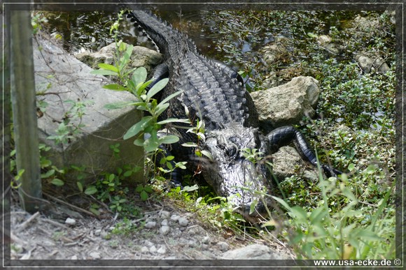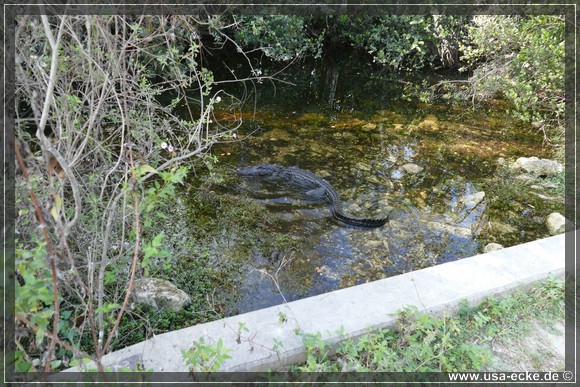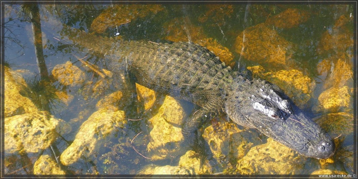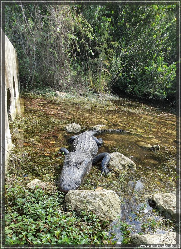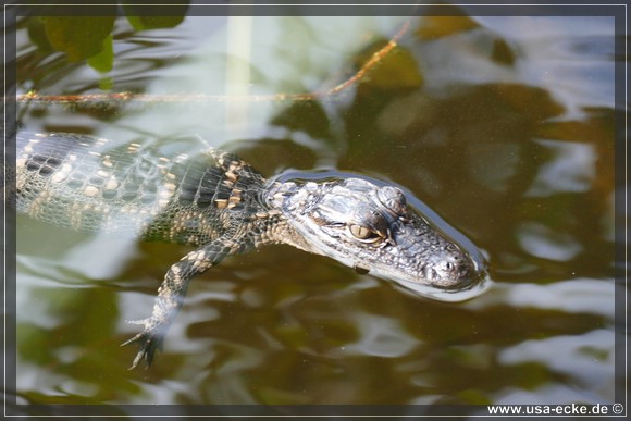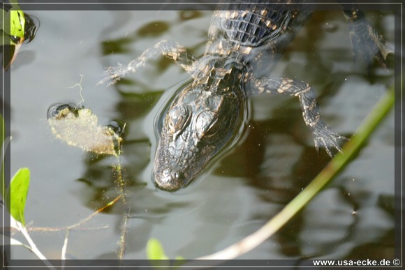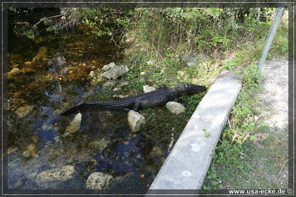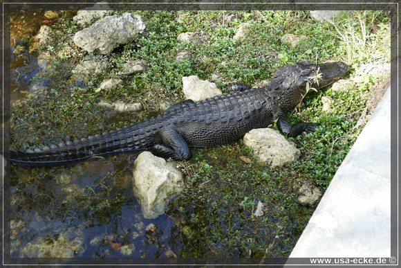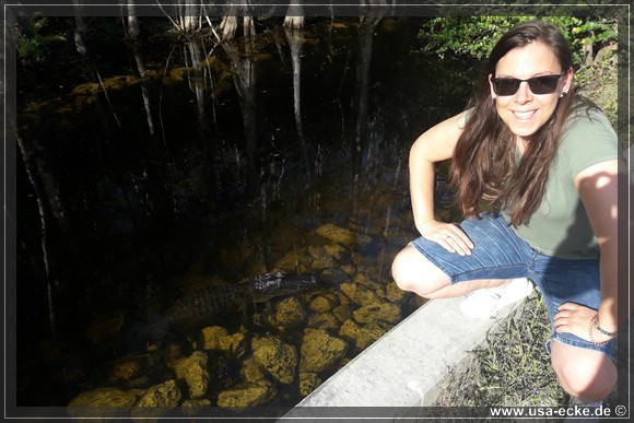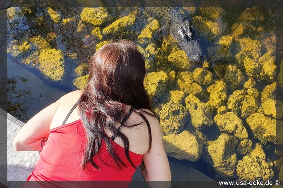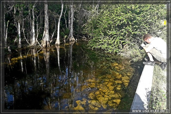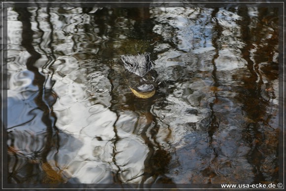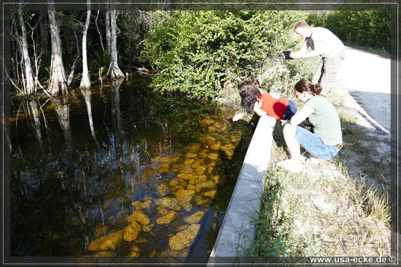 Auch hier kann man so einige Alligatoren bewundern, allerdings nur vom Steg aus. Hier tummeln sich auch verschiedene Vogelarten, Schildkroeten oder Fische herum. Jedoch ist das alles nicht zu vergleichen mit unseren Erlebnissen auf der Loop Road. |