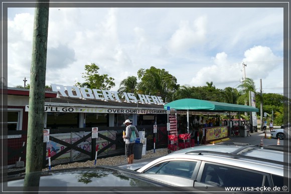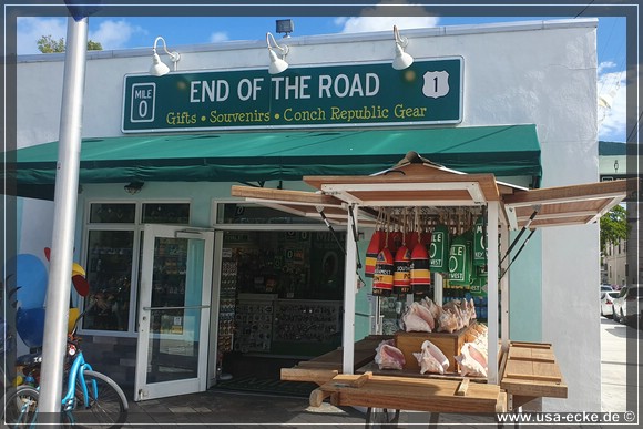 Weil wir gerade so schoen beim Fotografieren von Schildern sind, fahren wir als naechstes gleich einen weiteren Punkt an, den wir bisher allerdings noch nie auf dem Schirm hatten. Sabrina hat im "End of the road"-Souvenir Shop am Mile Marker 0 etwas entdeckt, was wir bisher doch glatt immer uebersehen haben. Der Shop ist uebrigens richtig nett und hat jede Menge tolle Mitbringsel. Als Souvenirjaeger ein MUSS... |
