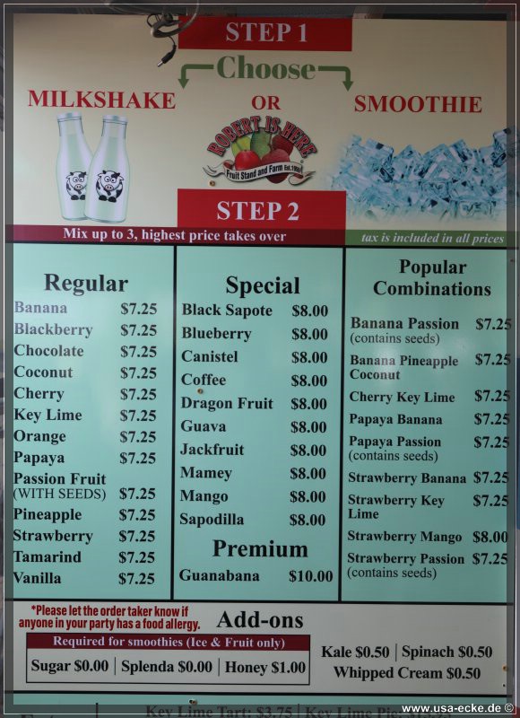 Dann geht es weiter zu Robert is here in Florida City. Der Laden ist beruehmt fuer sein Obst, seine Smoothies, Shakes und einiges andere. Sabrina und Holger lassen es sich schmecken, ich aber brauche jetzt erstmal was herzhaftes. Deswegen halten wir auch noch kurz bei McDonalds… |
