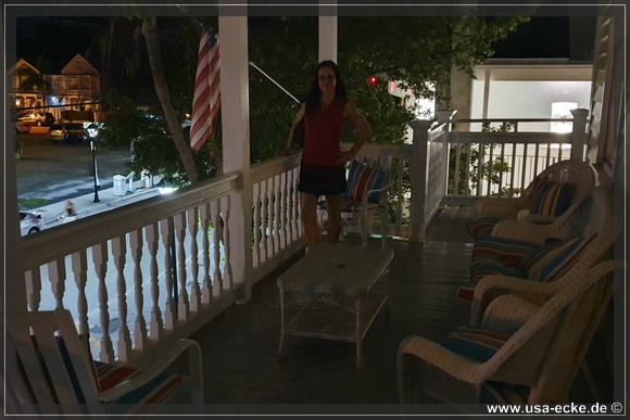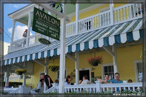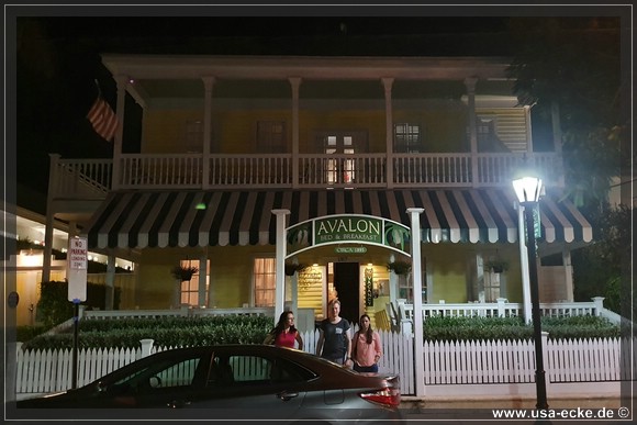 Es ist bereits 19.00 Uhr, als wir unser Hotel erreichen: das Avalon Bed & Breakfast direkt an der Duval Street. Es ist unser erstes B&B ueberhaupt und auch wenn es Key West typisch nicht so ganz guenstig ist, bereuen wir die Buchung hier nicht.