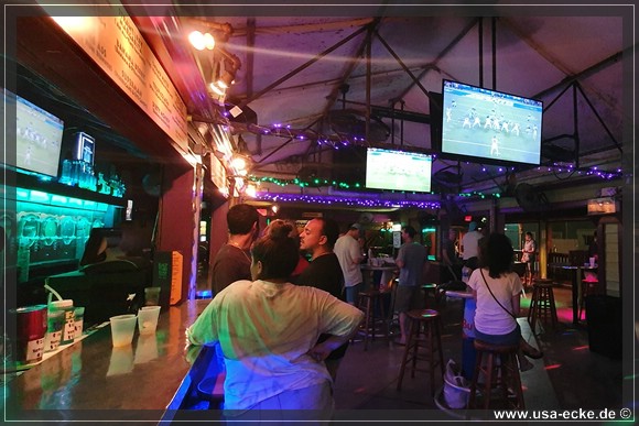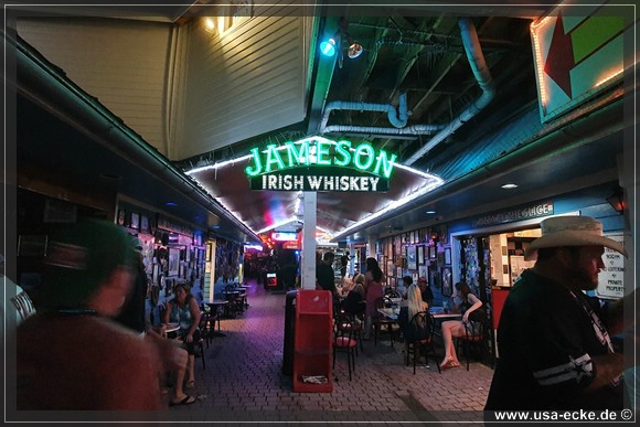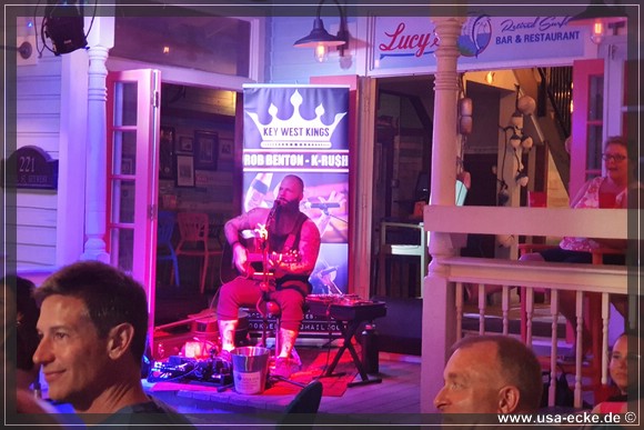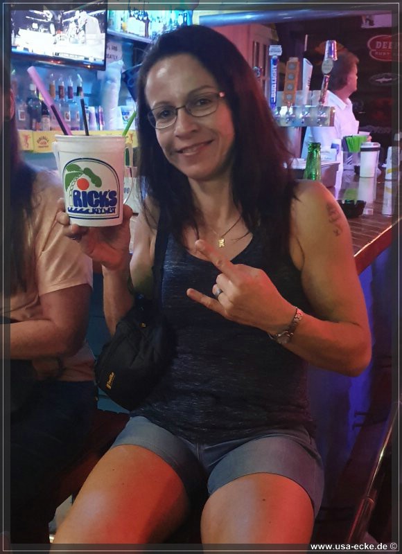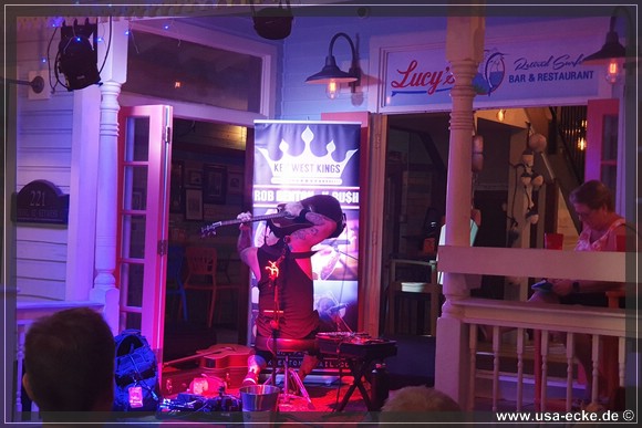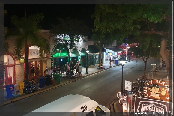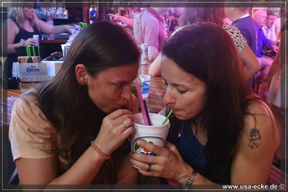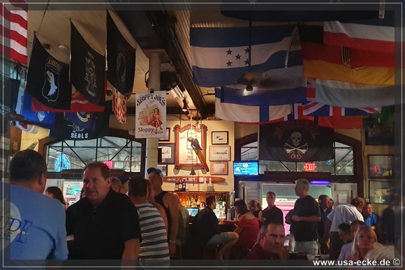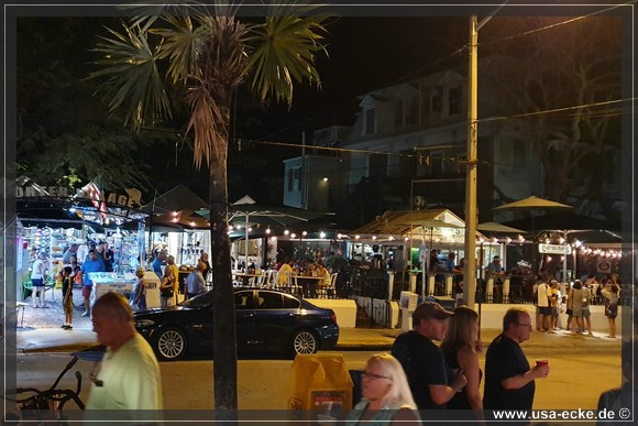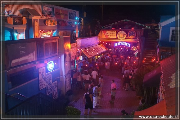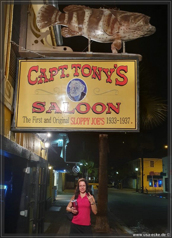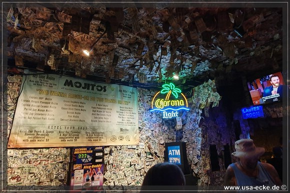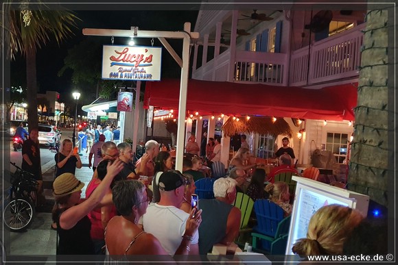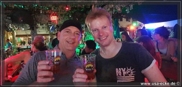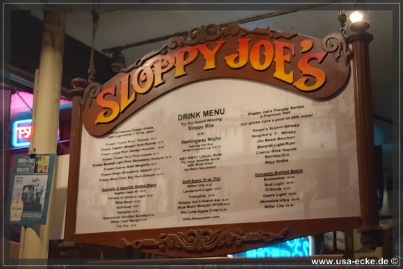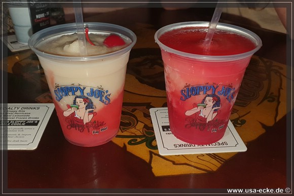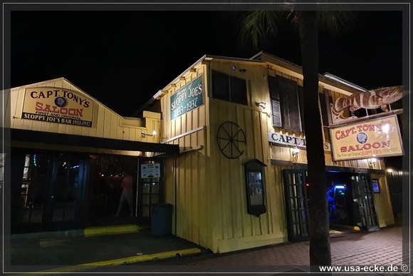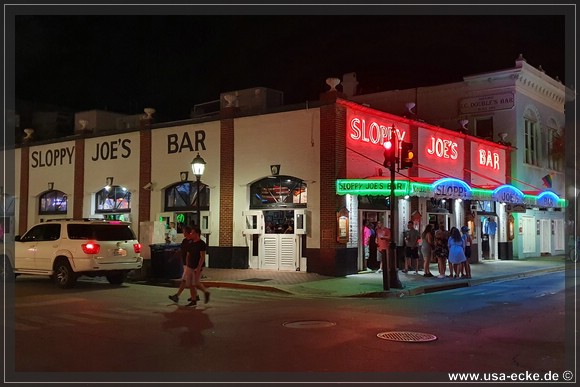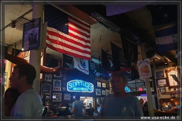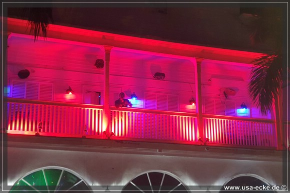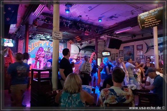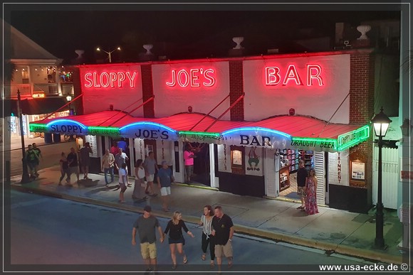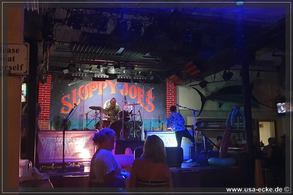 Nach dem leckeren Abendessen im Hard Rock Cafe landen wir heute erstmal im Sloppy Joes, wo wir eine ganze Zeit der Liveband zuhoeren und uns einen kleinen Cocktail genehmigen. Da die Musik nicht wirklich der Brueller ist, bummeln wir bald darauf weiter durch die Bars an der Duval Street. |