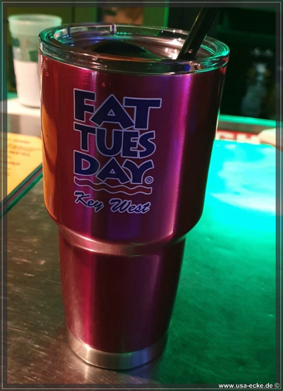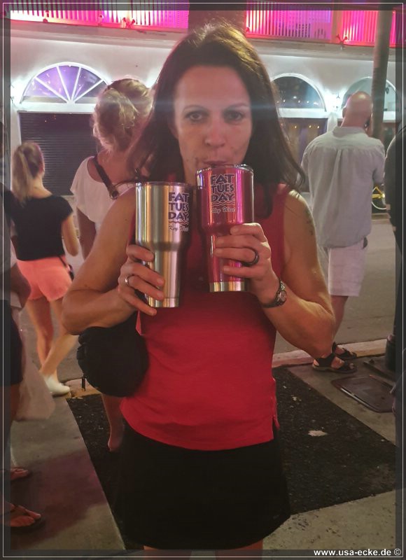 Gleich nebenan liegt Fat Tuesday Key West, dort nehmen wir uns als Wegzehrung gleich mal einen 190 Octane mit. Naja – ich nehm einen Strawberry mit Jack Daniels-Veredelung, der bekommt mir besser… |
