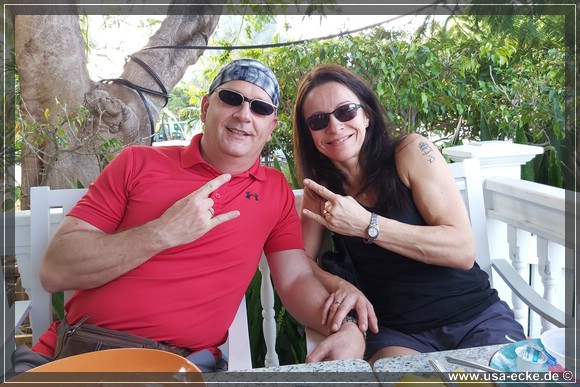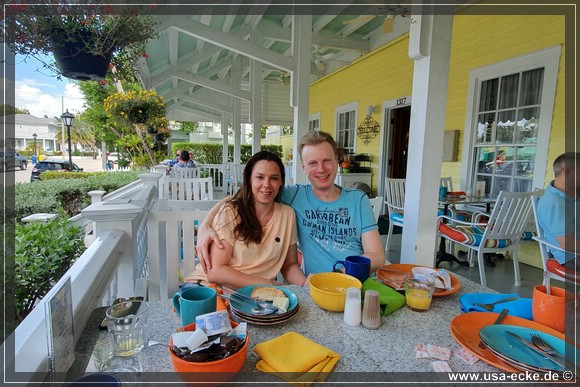Sabrina und Holger waren vor sechseinhalb Jahren auch schon mal auf Key West, allerdings hatten sie damals mit dem Wetter absolut kein Glueck. Es regnete so stark, dass die Insel mehr oder weniger unter Wasser stand. Und so freuen wir uns alle, dass es heute und auch die naechsten Tage trocken bleiben soll.