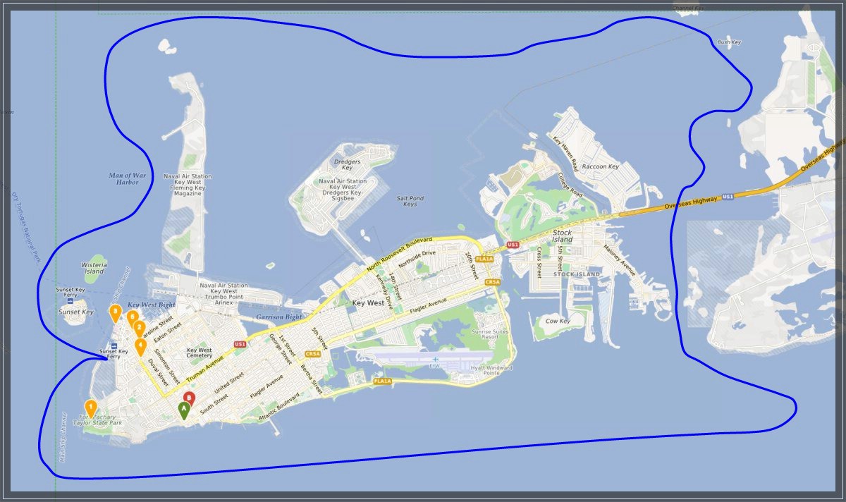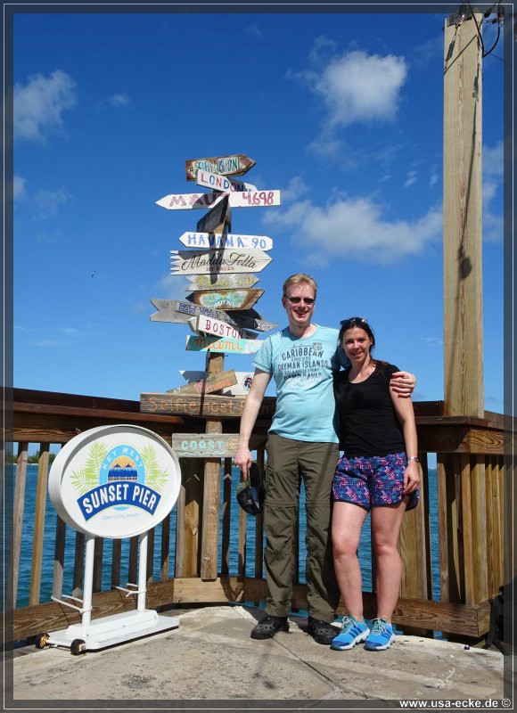 Der Selfiemost Point am Sunset Pier oder auch Zero Duval Street gilt als der Endpunkt der Duval Street direkt am Meer. Mit Sunset Key und Wisteria Island im Hintergrund ein ebenfalls richtig tolles Fotomotiv. |