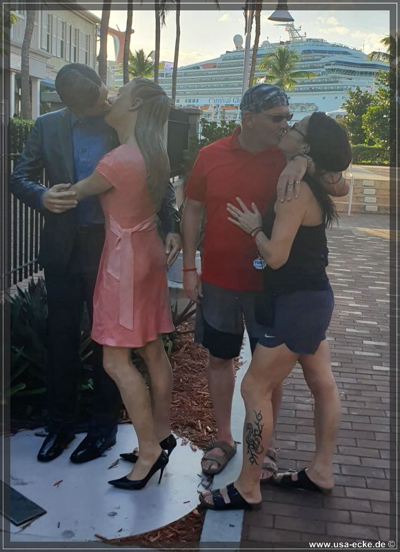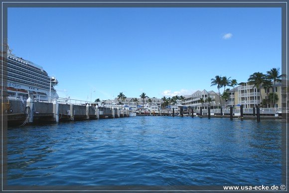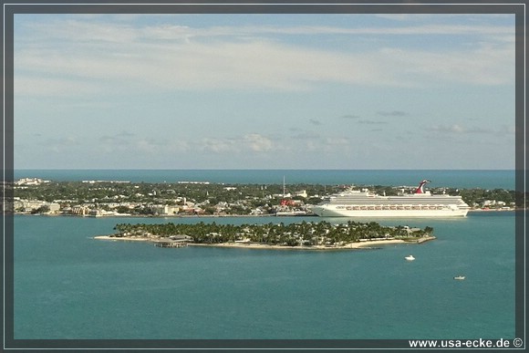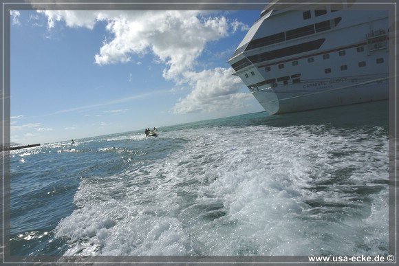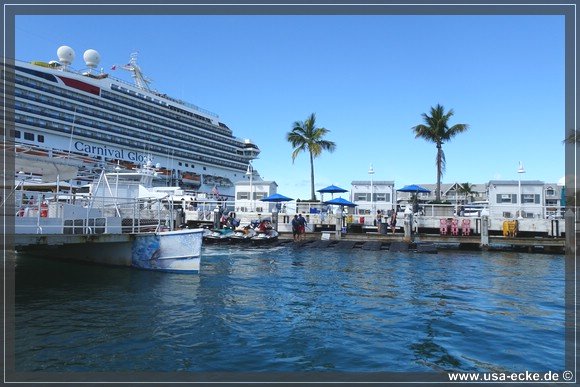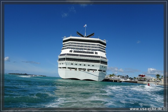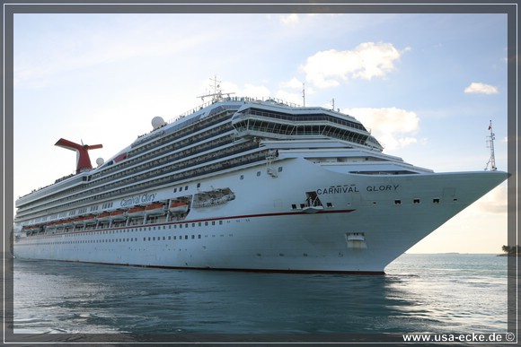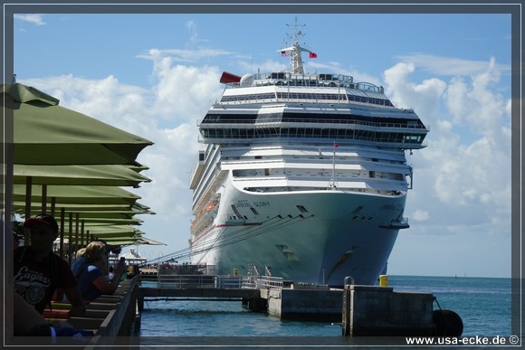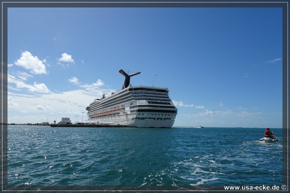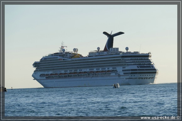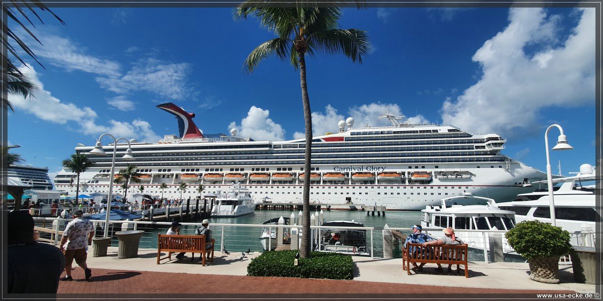 Wir radeln wieder zurueck zum Mallory Square, wo gerade gleich zwei grosse Kreuzfahrtschiffe angelegt haben: die Carnival Glory und die Carnival Victory. Uns interessieren die Schiffe jedoch nur am Rande. |