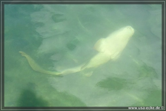 Beeindruckend sind auch die riesigen Tarpon Fische, die man hier einmal am Tag fuettern kann. Angeblich springen sie sogar weit aus dem Wasser und schnappen sich die kleinen Futterfische direkt aus der Hand!