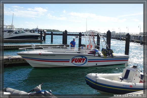 Nach dem Einchecken laufen wir auf der Duval Street in Richtung Hard Rock Cafe. Obwohl der Hunger schon gewaltig ist, nehmen wir uns die Zeit, schnell bei Fury Water Adventures zu halten und den morgigen Tag auszugestalten. |