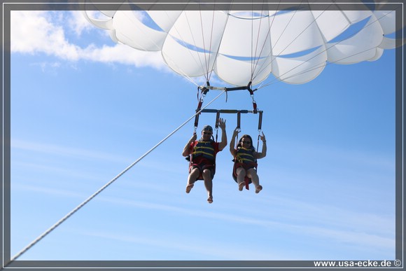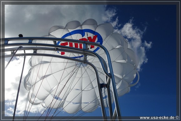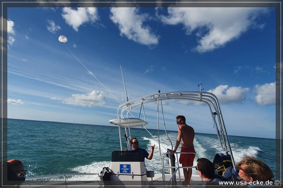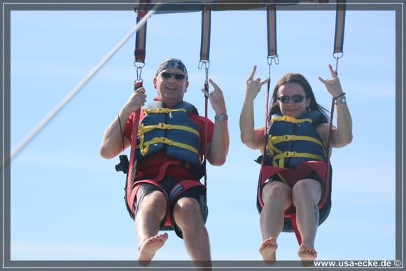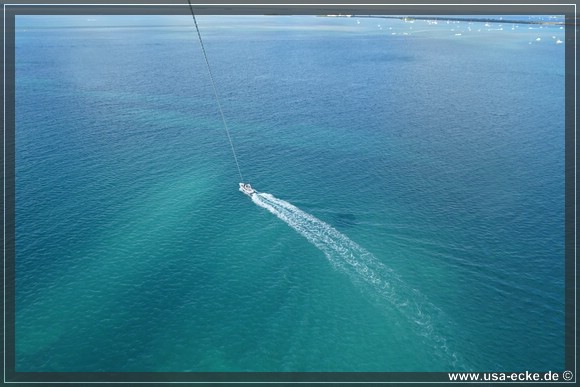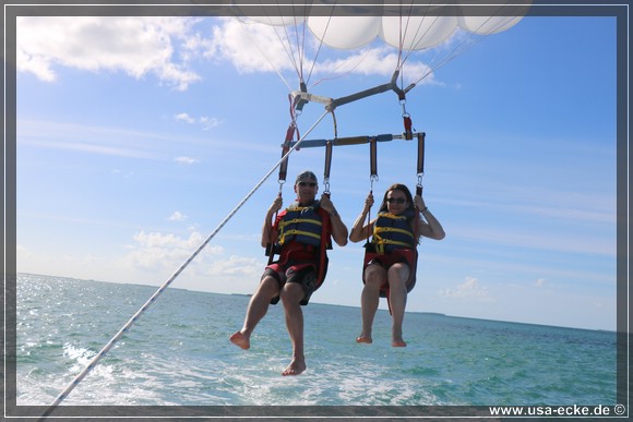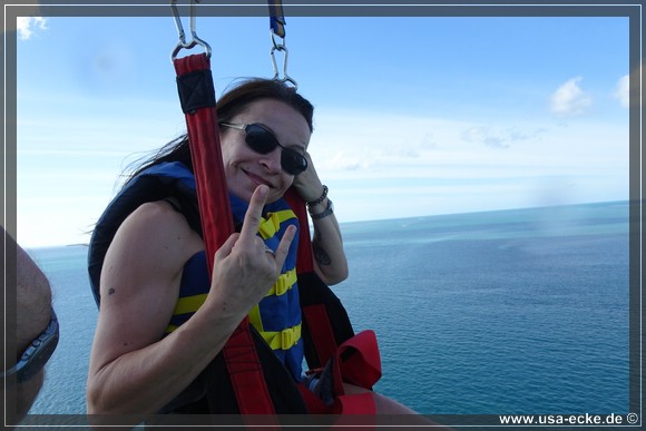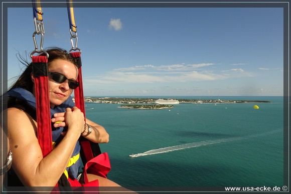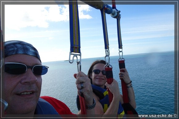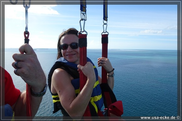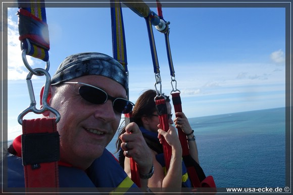 Dieses Mal sind wir die ersten, die in unserer Gruppe hinaufgezogen werden. Der Flug ist wie immer klasse und im Gegensatz zum letzten Mal vor drei Jahren haben wir heute auch einen traumhaften Blick auf Key West. Leider ist das ganze immer schon nach wenigen Minuten wieder vorbei, wir wuerden es da oben durchaus etwas laenger aushalten! |