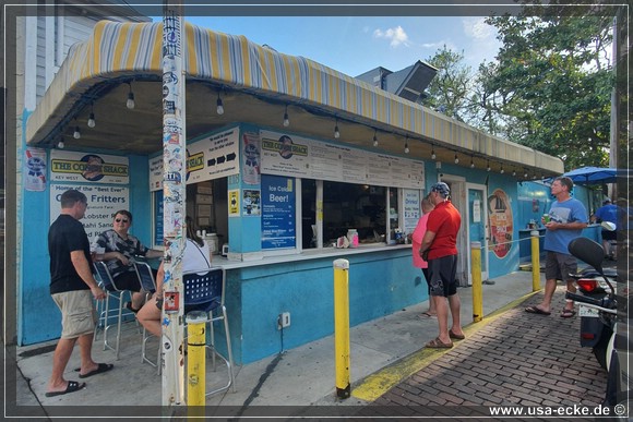 Da wir bis zu unserem naechsten Termin noch etwas Zeit haben, radeln wir die kurze Green Street hinunter bis zum Ende, laufen dort ein wenig am Pier entlang bis zum Commodore Restaurant, ehemals die Conch Republic Seafood Company. |