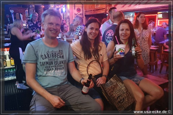 Mit unseren Daiquiris bewaffnet schlendern wir von Bar zu Bar und hoeren den Live Bands bei ihren Gigs zu. Besonders bei Lucy’s und Hog’s Breath halten wir uns laenger auf, dann aber machen wir uns auf den Rueckweg in Richtung Hotel. |