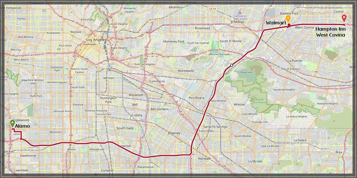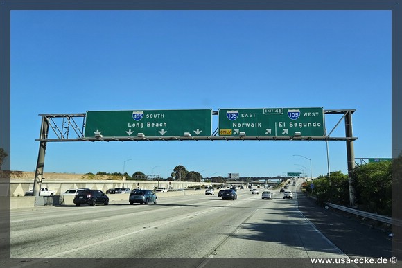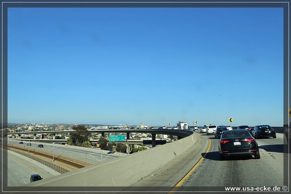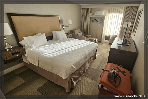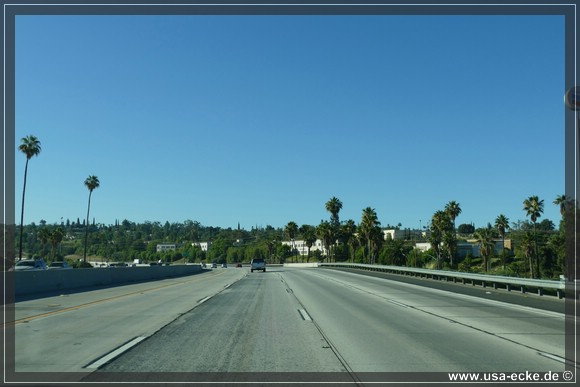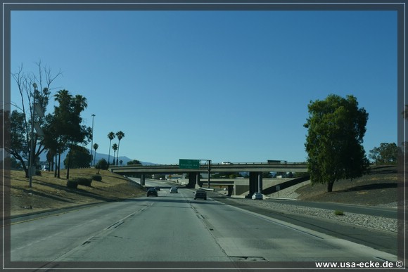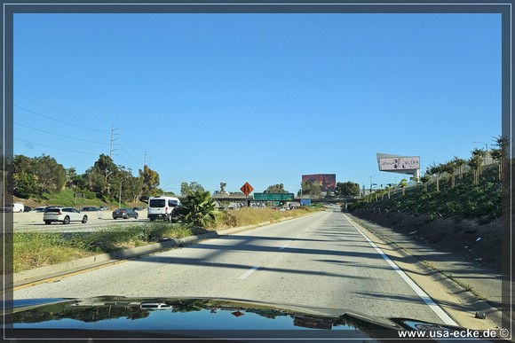 Die Fahrt zu unserem ersten Hotel in West Covina verlaeuft ohne Probleme, nach 50 Minuten Fahrzeit erreichen wir gegen halb sieben das Hampton Inn. Das Zimmer ist prima, Fruehstueck ist auch dabei und die Lage fuer unseren Start morgen frueh perfekt. |