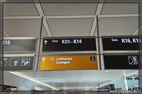 Nachdem wir eine zeitlang durch die Geschaefte gebummelt sind, essen und trinken wir eine Kleinigkeit und warten dann geduldig auf den Aufruf zum Check In.