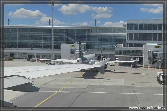Eine gute halbe Stunde spaeter sind die Koffer des fehlenden Passagiers raus und wir legen vom Gate ab – endlich. Mit dem spaeter begonnenen Check In und der Verzoegerung durch das Ausladen des Gepaecks verlieren wir ca. 45 Minuten. Naja – was solls, wir muessen ja keinen Anschlussflug erreichen.