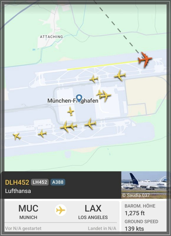 Auch der Flug war zu diesem Zeitpunkt bereits eingetuetet - wieder mit dem A380 der Lufthansa. Nur der Mietwagen wollte nicht passen. |