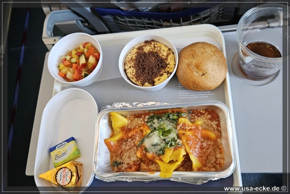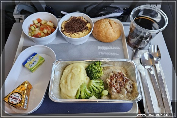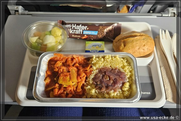 Kurz vor der Landung gibt es sogar nochmal ein Abendessen und auch das ist wirklich gut. |