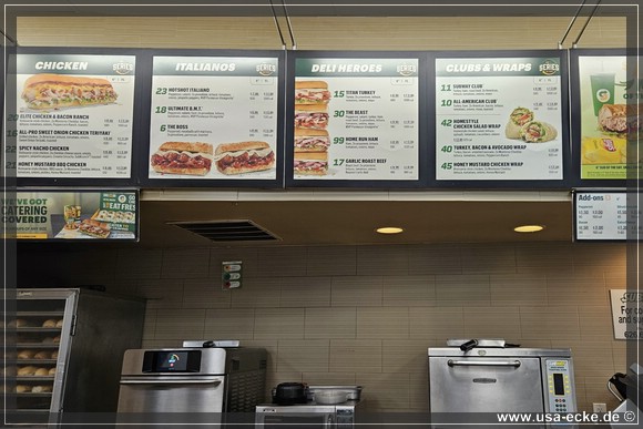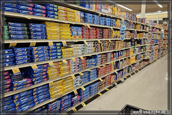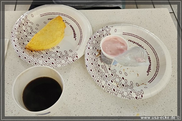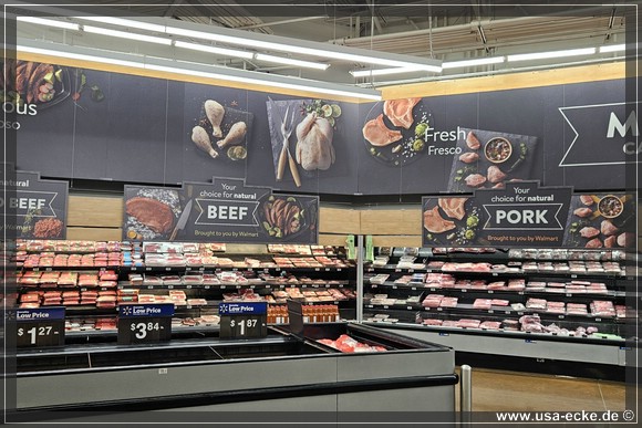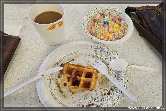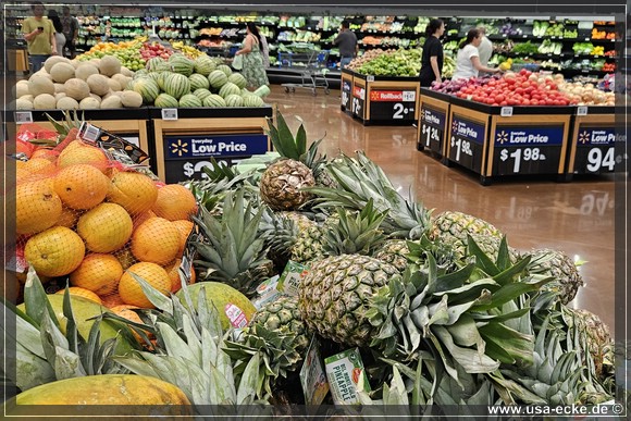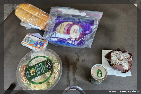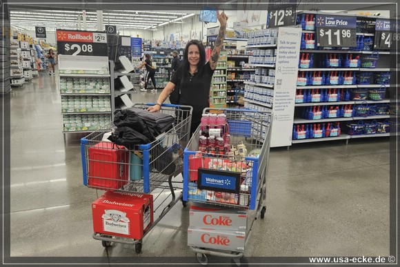 Der Walmart Superstore ist nur wenige Meilen entfernt, ein Subway ist ebenfalls im Markt. So koennen wir uns erstmal staerken, bevor wir mit dem Grosseinkauf beginnen. Wir bekommen fast alles, was wir brauchen und sind schliesslich gegen halb zehn zurueck im Hotel. Nach einer Dusche fallen wir hundemuede in unser Bett und schlafen sofort ein. |