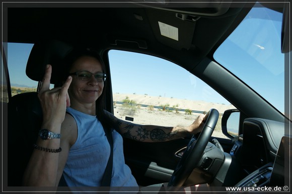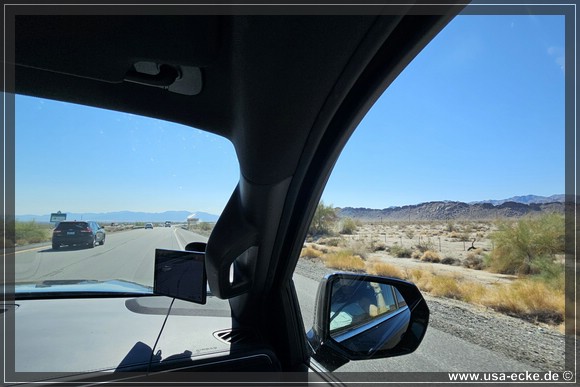 Bei Cabazon kommen wir genau an unserer Unfallstelle vom letzten Jahr vorbei, die direkt neben der Interstate auf der kleinen Nebenstrasse liegt. Das war wirklich ein Schreck und wir hoffen, dass wir dieses Jahr von solchen Ereignissen verschont bleiben. |