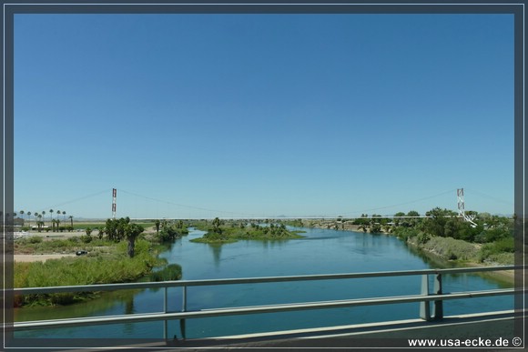 Wir fahren durch bis Blythe, der kleinen Grenzstadt zwischen California und Arizona. Der knapp 20.000 Einwohner kleine Ort liegt direkt am Colorado River, der auch der Grenzfluss zwischen den beiden Bundesstaaten ist. |