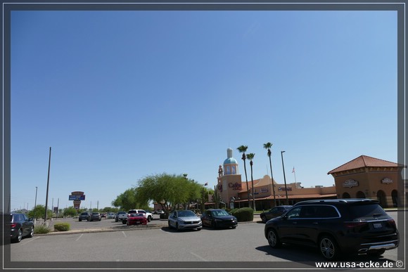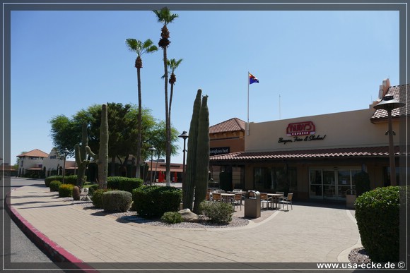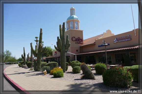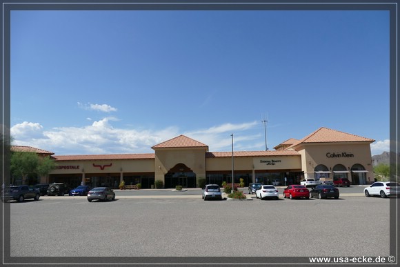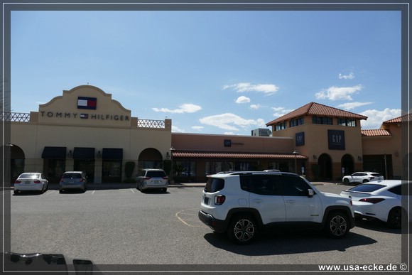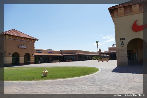 Nach dem Essen laufen wir ein wenig durch die Outlet und wundern uns, dass hier absolut nix los ist. Nada – voellig tote Hose. So gut wie keine Kunden. Ob es an der Hitze liegt? Wir hatten kurz vor Phoenix in der Wueste sagenhafte 47°C, das ist schon heftig. Hier ist es etwas kuehler, aber es sind immer noch deutlich ueber 40°C. |