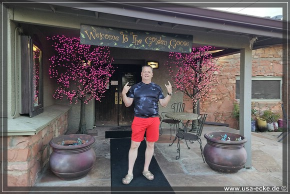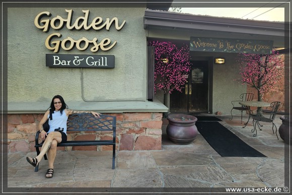 Abendessen gibt es heute im Golden Goose – HAMMER! Das Steakhouse kennen wir von unserem letzten Sedona-Besuch und wie damals auch sind wir absolut begeistert. Die Steaks sind wieder extrem gut, so etwas bekommt man wirklich nur hier. |