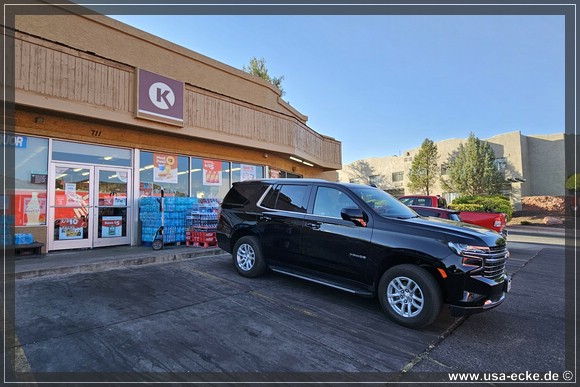 Um kurz nach sieben holen wir direkt nebenan beim K-Mart Eis, machen die Kuehlbox voll und starten zu unserem leider einzigen vollen Tag hier in Sedona. |