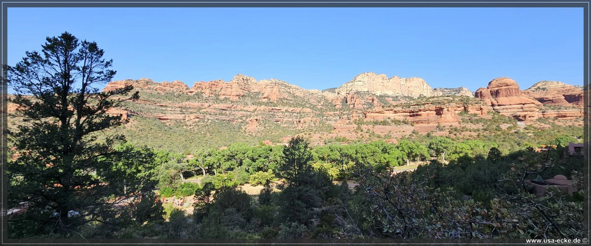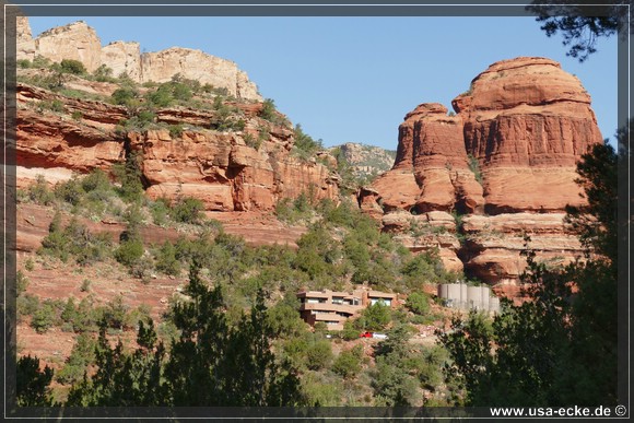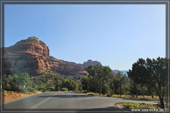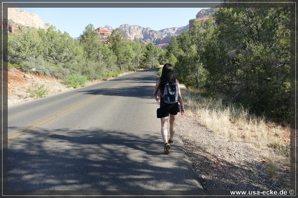 Unser Ziel ist das Enchantment Resort oder besser gesagt ein Parkplatz kurz davor. Das Parken entlang der Strasse ist hier streng verboten, weswegen wir auch so frueh hier sein wollen. Ist am Boynton Canyon Trailhead Parking alles voll, wird es nix mit unserem geplanten Hike.