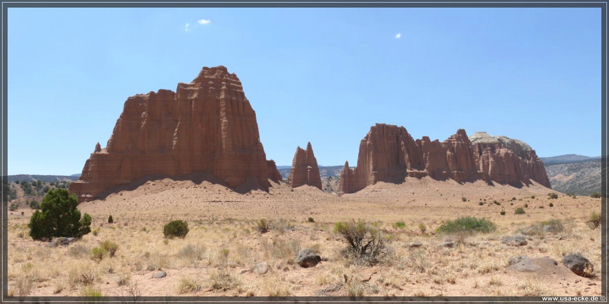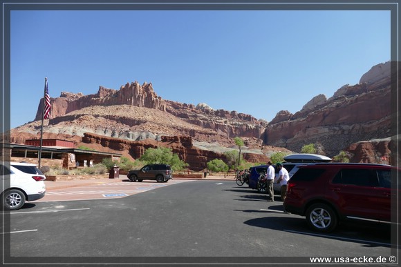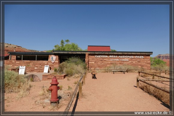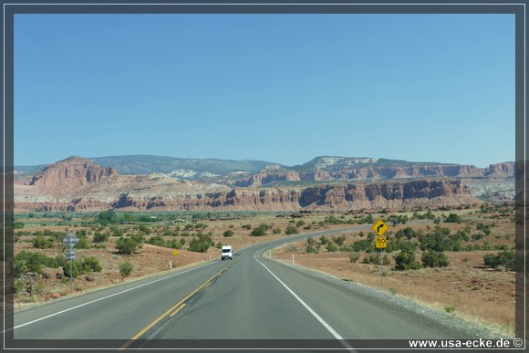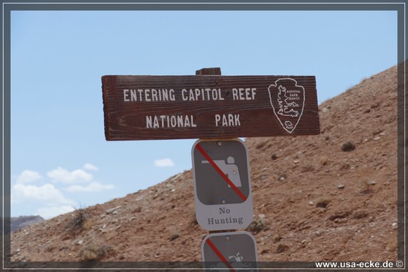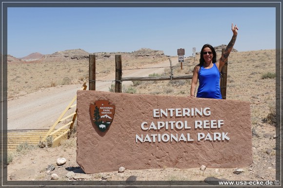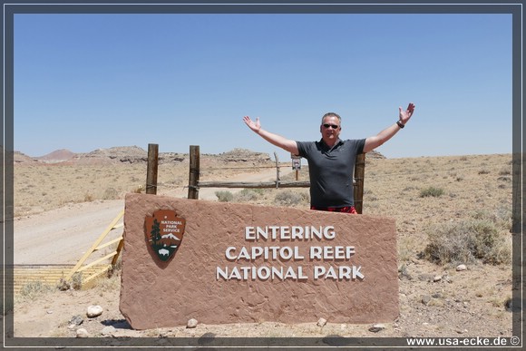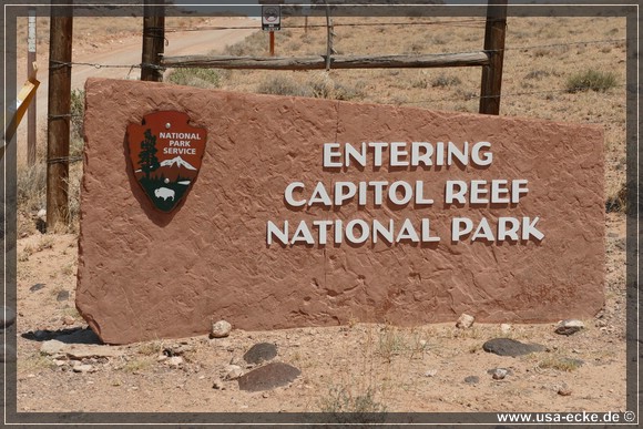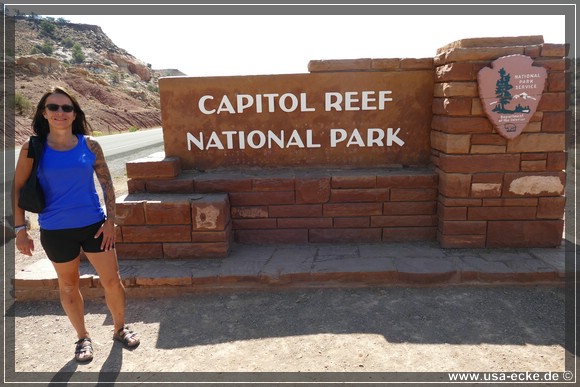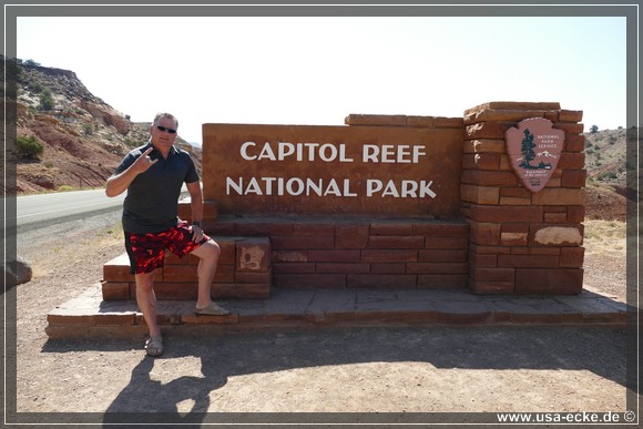 Nach einem kurzen Stop am Escalante welcome sign geht es ueber Boulder und Torrey zum Capitol Reef National Park, wo wir am Visitor Center eine kurze PP-Pause einlegen. Leider haben wir heute keine Zeit fuer den Scenic Drive oder laengere Hikes, eigentlich muessten wir wirklich mal wieder fuer zwei drei Tage hier bleiben. |
