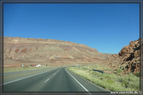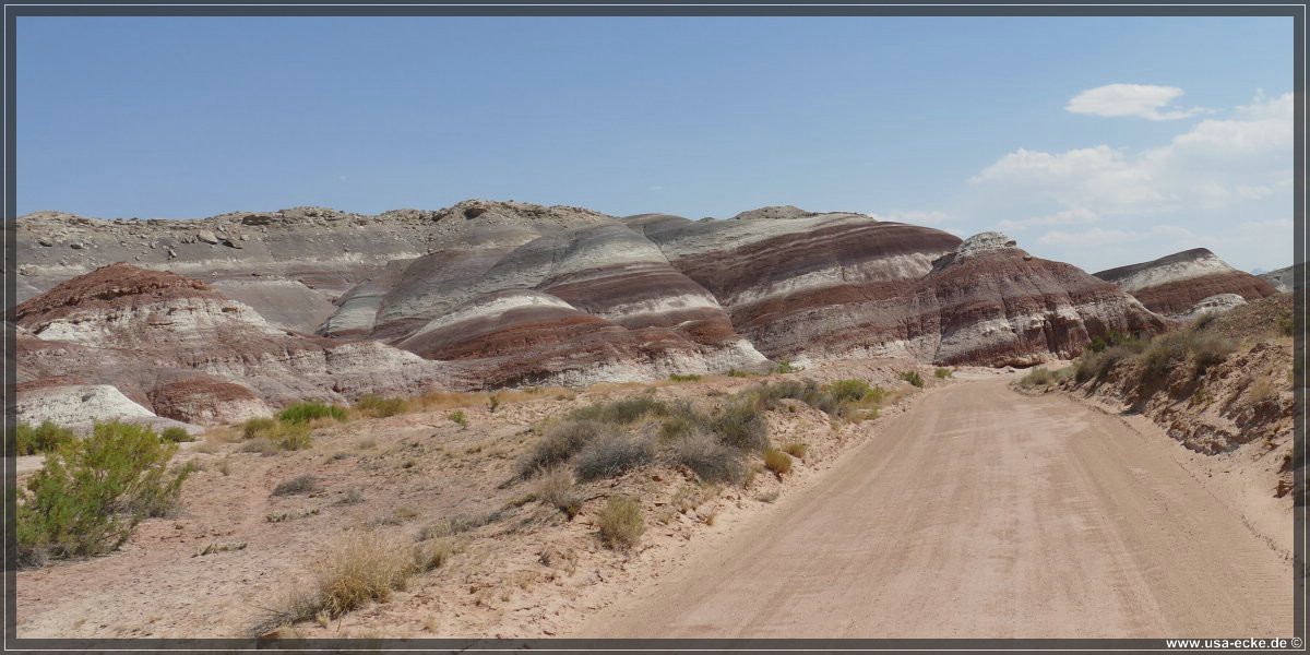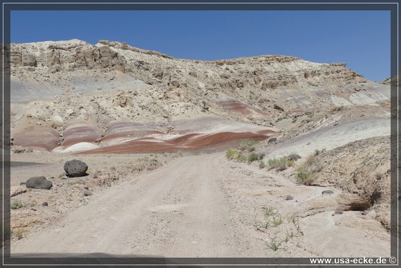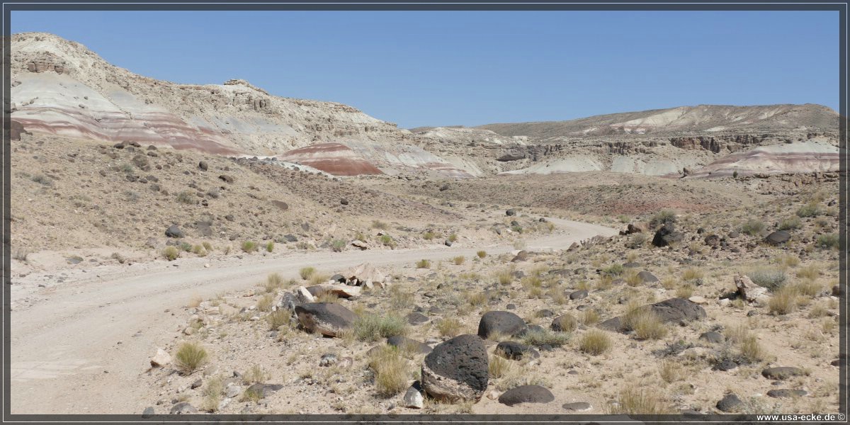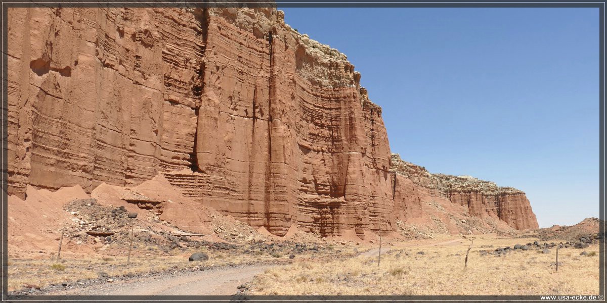 Jetzt geht es aber erst einmal weiter auf einer Teerstrasse. Wir folgen dem Hwy 24 wir fuer 7,6 Meilen, dann muessen wir links weg. Irgendwie hat Michael noch immer nicht genug von Back Roads, denn er hat fuer heute noch ein weiteres Highlight eingebaut, das ebenfalls nur ueber unbefestigte Wege erreichbar ist.