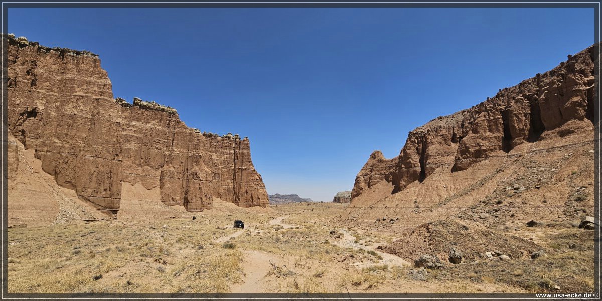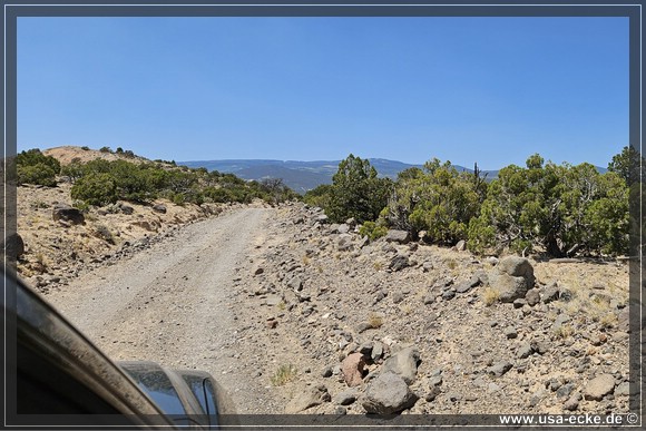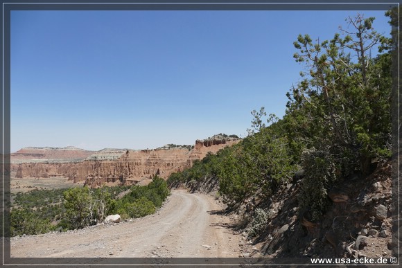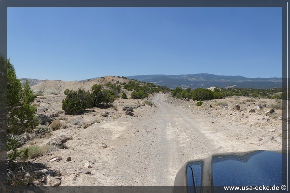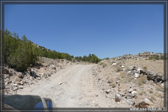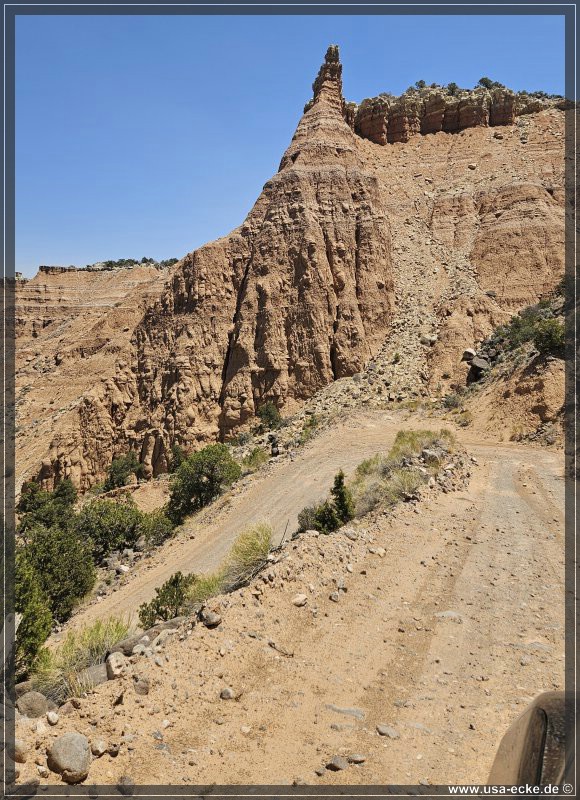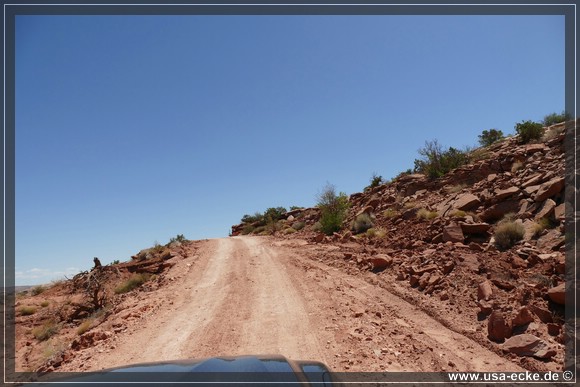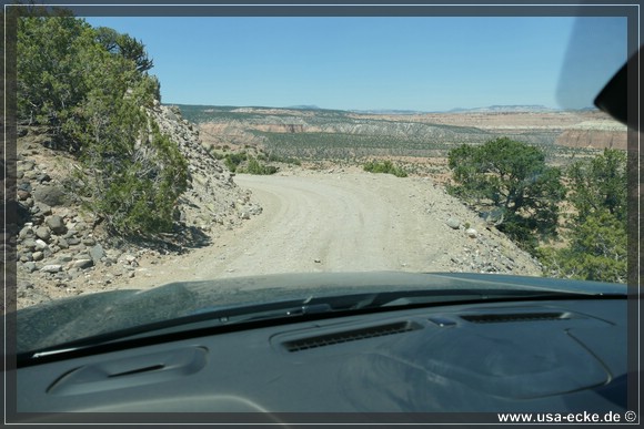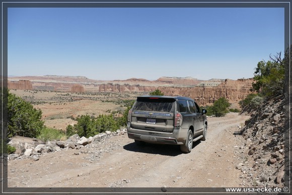 Wir bleiben weiterhin auf der Hartnet Cathedral Road und folgen dieser weitere 10,5 Meilen, bis wir links zum Upper South Desert Overlook abbiegen. Dieser Streckenabschnitt hat tatsaechlich ein paar ueble Stellen, die ohne High Clearance sicher nicht moeglich waeren.