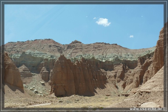 Es geht vorbei an den Walls of Jericho bis Cathedral Junction. Von Hartnet Junction ist diese Kreuzung etwas mehr als fuenf Meilen entfernt und irgendwo bei den Walls of Jericho haben wir so in etwa die Haelfte der Loop Road geschafft. |