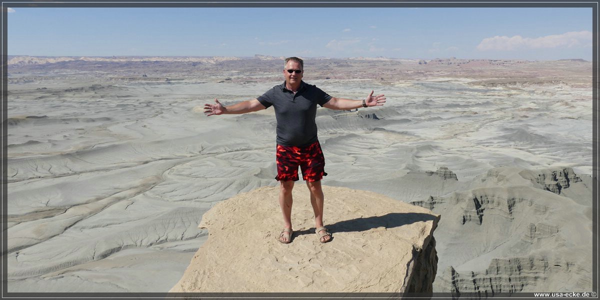 Yesssss - we made it! Von wegen fuer die meisten Fahrzeuge unpassierbar - pfffff. Gilt nicht fuer uns! Hehehehe. Die Fahrt ins Cathedral Valley und der gesamte Loop zaehlen sicher zu den verruecktesten Abenteuern, die wir bisher unternommen haben. |