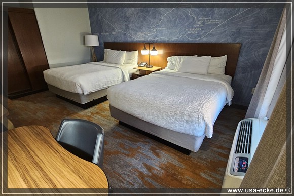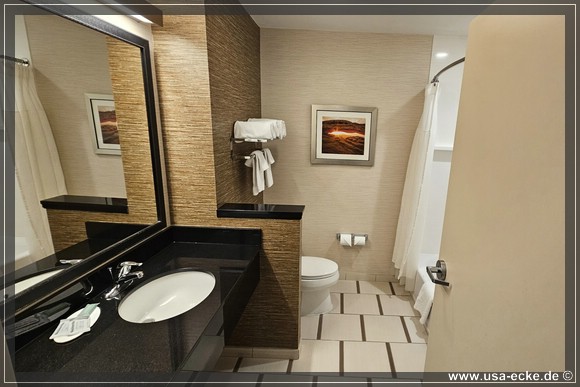 Bei der Recherche nach einer alternativen Unterkunft sind wir dann beim Fairfield Inn & Suites haengengeblieben, das wir bisher noch nie ernsthaft in Erwaegung gezogen haben. Die Preise sind normalerweise weit jenseits von Gut und Boese, doch offensichtlich sieht das 24 Stunden vor Anreise etwas anders aus. |