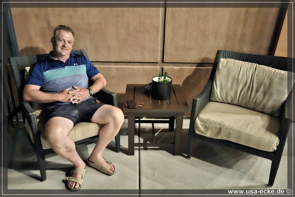 Nach dem Pool gehen wir duschen, bevor wir uns dann neben der Poolanlage in die bequemen Sessel schmeissen und den Abend mit einem Bierchen ausklingen lassen. |