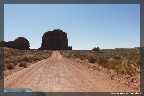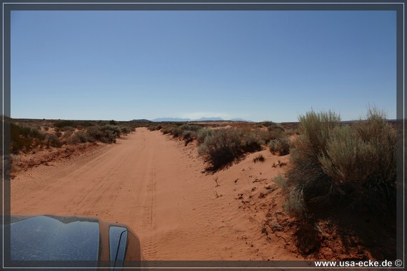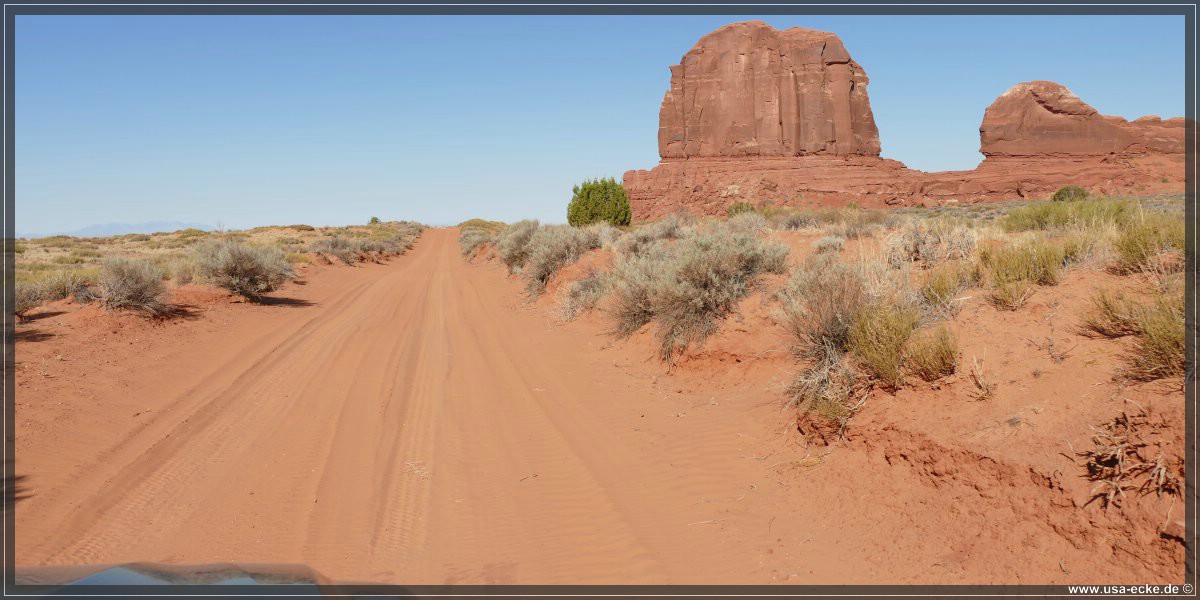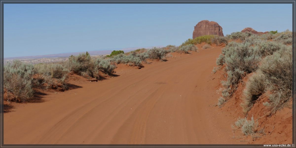 Von Cathedral Junction bis zur Abzweigung zu Temple of the sun and moon sind wir weitere 9,5 Meilen unterwegs. Je naeher wir an die beiden Monolithen herankommen, desto sandiger wird die Back Road.