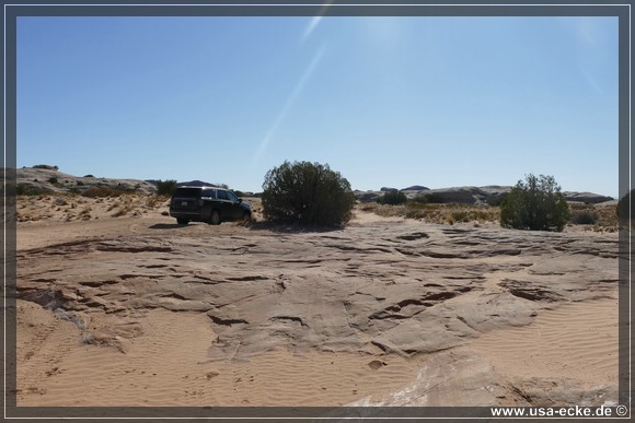 Spaetestens hier braucht man High Clearance und aufgrund der sandigen Passagen waere auch Allrad durchaus nuetzlich. Zur Not geht es auch ohne, man muss eben bei den Tiefsand-Passagen ein wenig Schwung nehmen, dann klappt das schon. |